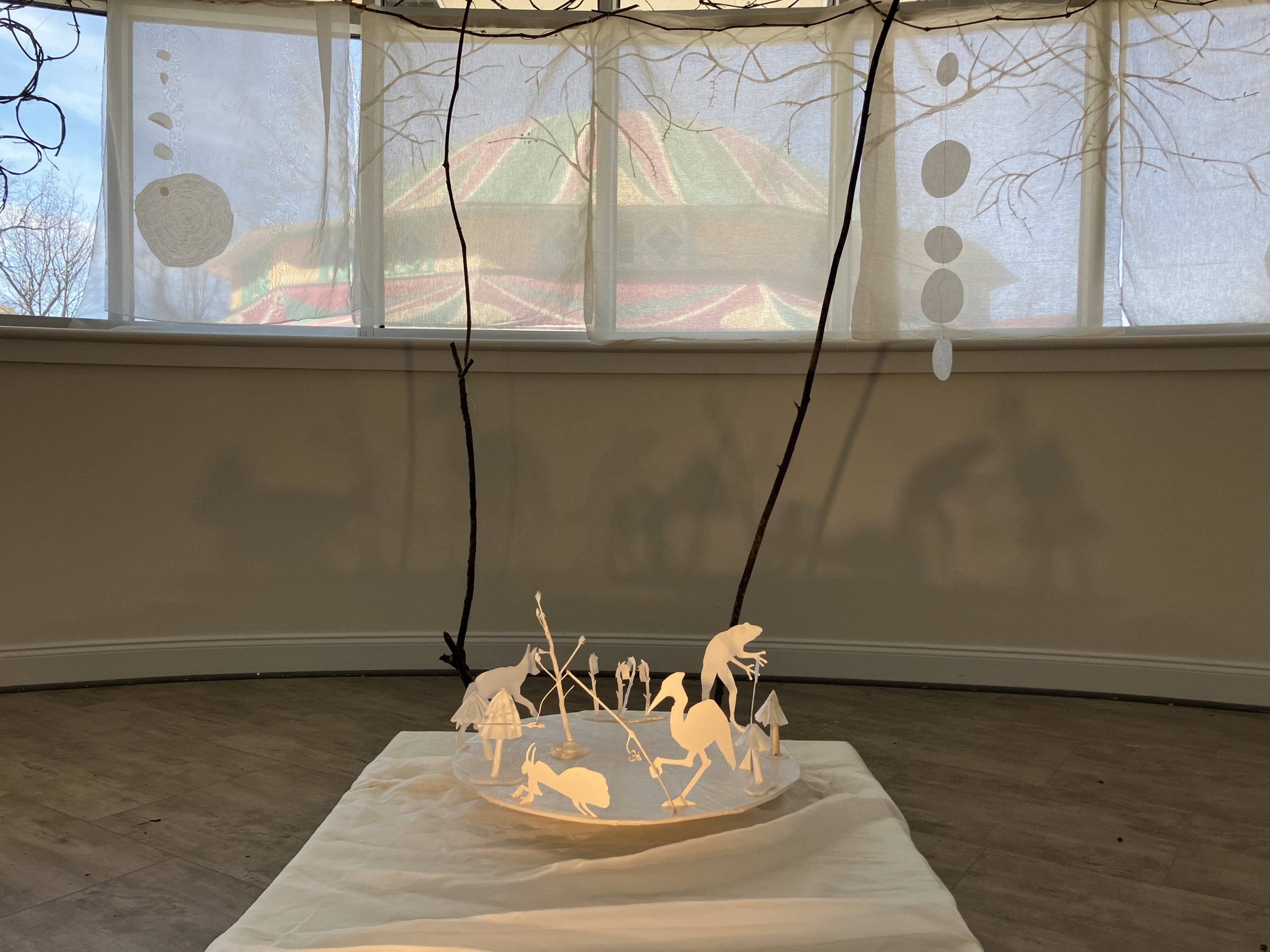 Gleaners Song for Glen Echo is an exhibition of mixed-media and ephemeral works inspired by my desire to reconnect with a shared animate world, and in response to the layered histories and natural environment of Glen Echo.