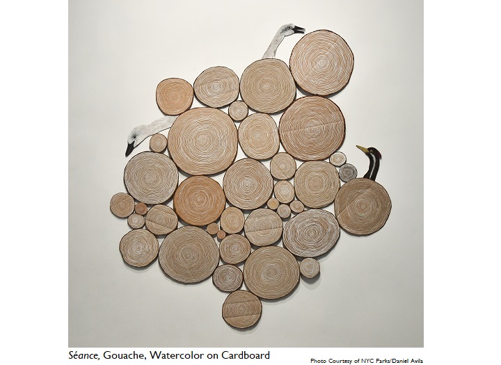 This exhibition is my love song to the NYC parks and Central Park in particular. The parks have always been my refuge and have offered a nurturing and dynamic pathway for me to live in this city. It is my hope to offer these pieces as an invitation to see the possibilities of beauty all around us not just in the parks, but in the clouds in the sky, dandelions in sidewalk cracks, the buzz of insects, and pigeon’s strut.